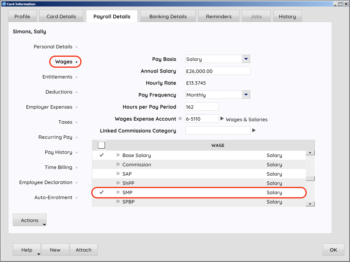 In order to pay an employee SMP, SPP, SAP, ShPP, SPBP, and SNCP they must have the appropriate wage category.